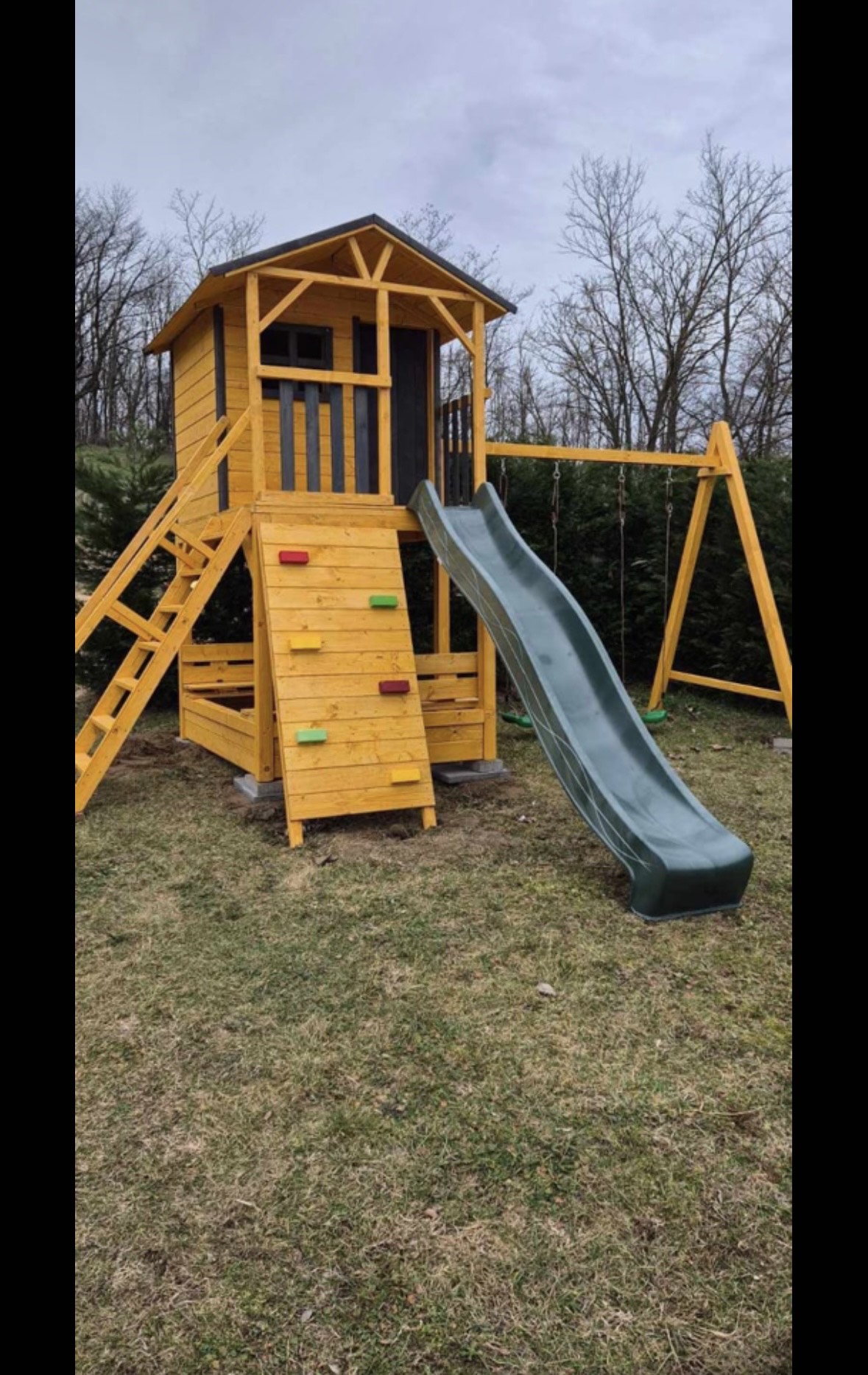 Játszótér csúzdával Érdekel a termék. Leírás: Szárított borovi fenyőből készült termék. Az alap játszótér tartalmazza: 150 x 200cm házikó és ugyanekkora homokozó alatta. Nagy 3 méteres csúszda, 2db laphinta állvánnyal együtt és a feljáró! Plusz rendelhető: 3 kiállásos hinta állvány, 2db kispaddá alakítható homokozó fedél, korlát a feljáróhoz, kisebb vagy nagyobb mászó fal, a homokozóra illeszthető 2db kis pad és asztal, illetve baba vagy fészek hinta! Masszív szerkezet 8,5 x 8,5cm gerendázással! Szín választék: szürke fehér, cseresznye zöld szürke vagy barna zöld szürke! Felületkezelés: 1 rétegimpregnáló, 2 réteg vékony lazúr. Garancia: 6 1 év. Karbantartás: Tisztítás és karbantartás: nedves, pamut törlőkendővel, 4 évente csiszolás és újra felületkezelés amennyiben szükséges. Helyigény: Szélessége: 4,5m Magassága: 3 m Mélysége: 5m Szerelési útmutató: Szükséges szerszámok: fúró-csavarozó, villáskulcs, kalapács. Szín: Több színben is kapható. A fényképek alapján választható. Méret: 1,5 x 2 méter Tel.: +3630 886-8137 Fogy ár: 850.000 Ft Nyitva: 08:00 - 17:00 óráig | szombaton zárva Játszótér csúzdával Érdekel a termék. Leírás: Szárított borovi fenyőből készült termék. Az alap játszótér tartalmazza: 150 x 200cm házikó és ugyanekkora homokozó alatta. Nagy 3 méteres csúszda, 2db laphinta állvánnyal együtt és a feljáró! Plusz rendelhető: 3 kiállásos hinta állvány, 2db kispaddá alakítható homokozó fedél, korlát a feljáróhoz, kisebb vagy nagyobb mászó fal, a homokozóra illeszthető 2db kis pad és asztal, illetve baba vagy fészek hinta! Masszív szerkezet 8,5 x 8,5cm gerendázással! Szín választék: szürke fehér, cseresznye zöld szürke vagy barna zöld szürke! Felületkezelés: 1 rétegimpregnáló, 2 réteg vékony lazúr. Garancia: 6 1 év. Karbantartás: Tisztítás és karbantartás: nedves, pamut törlőkendővel, 4 évente csiszolás és újra felületkezelés amennyiben szükséges. Helyigény: Szélessége: 4,5m Magassága: 3 m Mélysége: 5m Szerelési útmutató: Szükséges szerszámok: fúró-csavarozó, villáskulcs, kalapács. Szín: Több színben is kapható. A fényképek alapján választható. Méret: 1,5 x 2 méter Tel.: +3630 886-8137 Fogy ár: 850.000 Ft Nyitva: 08:00 - 17:00 óráig | szombaton zárva Játszótér csúzdával Érdekel a termék. Leírás: Szárított borovi fenyőből készült termék. Az alap játszótér tartalmazza: 150 x 200cm házikó és ugyanekkora homokozó alatta. Nagy 3 méteres csúszda, 2db laphinta állvánnyal együtt és a feljáró! Plusz rendelhető: 3 kiállásos hinta állvány, 2db kispaddá alakítható homokozó fedél, korlát a feljáróhoz, kisebb vagy nagyobb mászó fal, a homokozóra illeszthető 2db kis pad és asztal, illetve baba vagy fészek hinta! Masszív szerkezet 8,5 x 8,5cm gerendázással! Szín választék: szürke fehér, cseresznye zöld szürke vagy barna zöld szürke! Felületkezelés: 1 rétegimpregnáló, 2 réteg vékony lazúr. Garancia: 6 1 év. Karbantartás: Tisztítás és karbantartás: nedves, pamut törlőkendővel, 4 évente csiszolás és újra felületkezelés amennyiben szükséges. Helyigény: Szélessége: 4,5m Magassága: 3 m Mélysége: 5m Szerelési útmutató: Szükséges szerszámok: fúró-csavarozó, villáskulcs, kalapács. Szín: Több színben is kapható. A fényképek alapján választható. Méret: 1,5 x 2 méter Tel.: +3630 886-8137 Fogy ár: 850.000 Ft Nyitva: 08:00 - 17:00 óráig | szombaton zárva Játszótér csúzdával Érdekel a termék. Leírás: Szárított borovi fenyőből készült termék. Az alap játszótér tartalmazza: 150 x 200cm házikó és ugyanekkora homokozó alatta. Nagy 3 méteres csúszda, 2db laphinta állvánnyal együtt és a feljáró! Plusz rendelhető: 3 kiállásos hinta állvány, 2db kispaddá alakítható homokozó fedél, korlát a feljáróhoz, kisebb vagy nagyobb mászó fal, a homokozóra illeszthető 2db kis pad és asztal, illetve baba vagy fészek hinta! Masszív szerkezet 8,5 x 8,5cm gerendázással! Szín választék: szürke fehér, cseresznye zöld szürke vagy barna zöld szürke! Felületkezelés: 1 rétegimpregnáló, 2 réteg vékony lazúr. Garancia: 6 1 év. Karbantartás: Tisztítás és karbantartás: nedves, pamut törlőkendővel, 4 évente csiszolás és újra felületkezelés amennyiben szükséges. Helyigény: Szélessége: 4,5m Magassága: 3 m Mélysége: 5m Szerelési útmutató: Szükséges szerszámok: fúró-csavarozó, villáskulcs, kalapács. Szín: Több színben is kapható. A fényképek alapján választható. Méret: 1,5 x 2 méter Tel.: +3630 886-8137 Fogy ár: 850.000 Ft Nyitva: 08:00 - 17:00 óráig | szombaton zárva Játszótér csúzdával Érdekel a termék. Leírás: Szárított borovi fenyőből készült termék. Az alap játszótér tartalmazza: 150 x 200cm házikó és ugyanekkora homokozó alatta. Nagy 3 méteres csúszda, 2db laphinta állvánnyal együtt és a feljáró! Plusz rendelhető: 3 kiállásos hinta állvány, 2db kispaddá alakítható homokozó fedél, korlát a feljáróhoz, kisebb vagy nagyobb mászó fal, a homokozóra illeszthető 2db kis pad és asztal, illetve baba vagy fészek hinta! Masszív szerkezet 8,5 x 8,5cm gerendázással! Szín választék: szürke fehér, cseresznye zöld szürke vagy barna zöld szürke! Felületkezelés: 1 rétegimpregnáló, 2 réteg vékony lazúr. Garancia: 6 1 év. Karbantartás: Tisztítás és karbantartás: nedves, pamut törlőkendővel, 4 évente csiszolás és újra felületkezelés amennyiben szükséges. Helyigény: Szélessége: 4,5m Magassága: 3 m Mélysége: 5m Szerelési útmutató: Szükséges szerszámok: fúró-csavarozó, villáskulcs, kalapács. Szín: Több színben is kapható. A fényképek alapján választható. Méret: 1,5 x 2 méter Tel.: +3630 886-